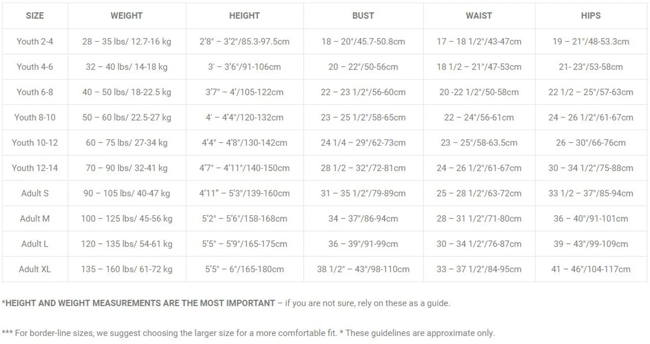 | Size | Youth Small, Youth Medium, Youth Large, Adult Small, Adult Medium, Adult Large |