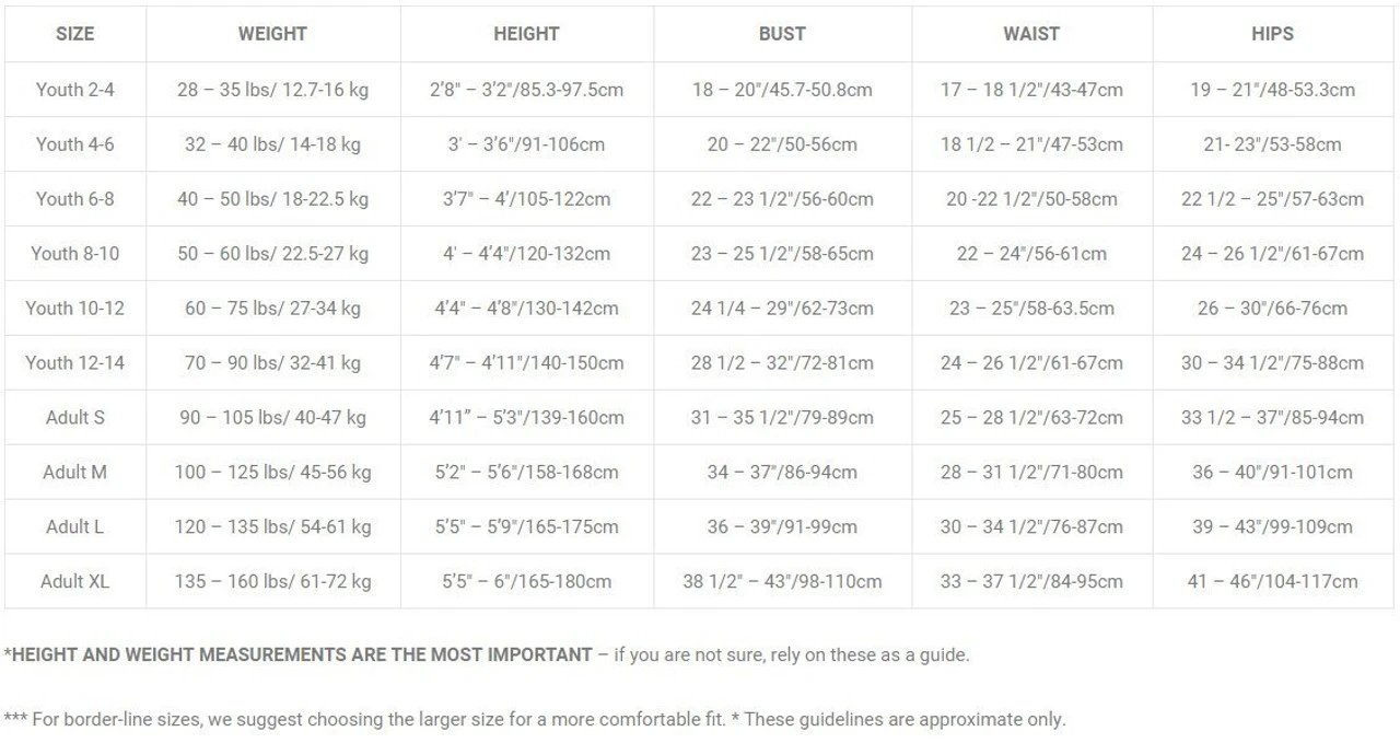 | Size | 6-8, 8-10, 10-12, 12-14, Adult Small, Adult Medium, Adult Large, Adult XL |
