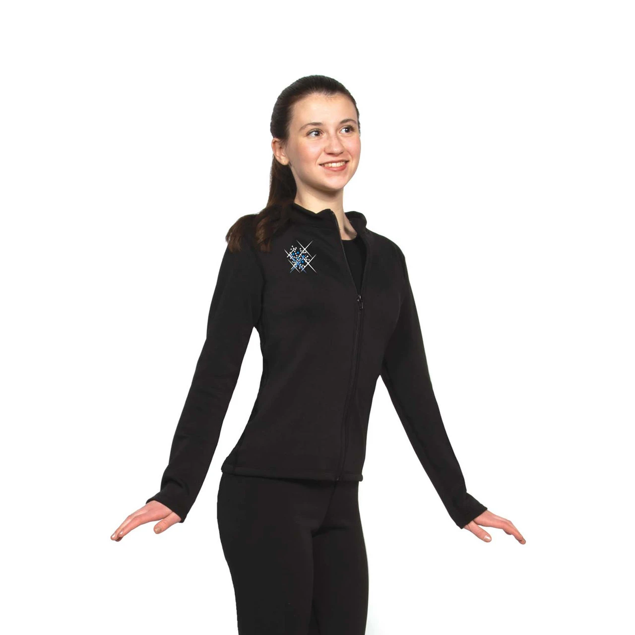 Full zipper jacket in warm fleece with sparkling crystal snowflake design across the back.