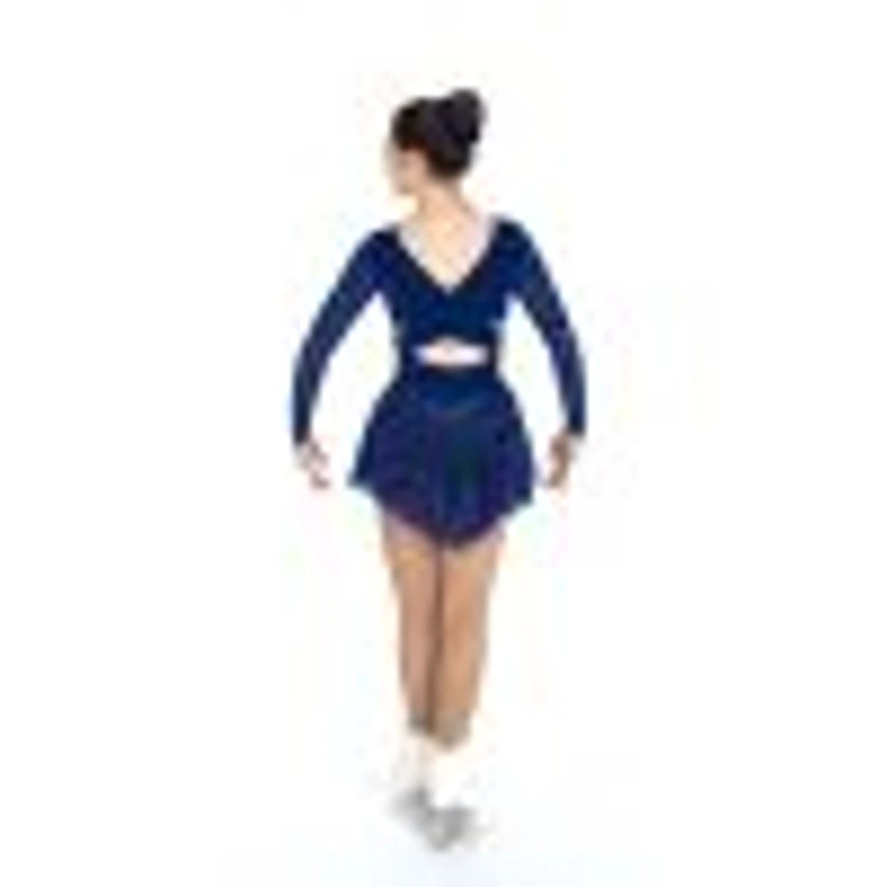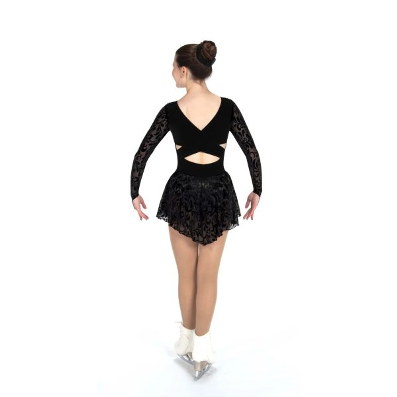 Velvet dress with long flocked velvet sleeves and a matching slim cut skirt with a shaped back hem and a crossed wrap design back. Simple and elegant.